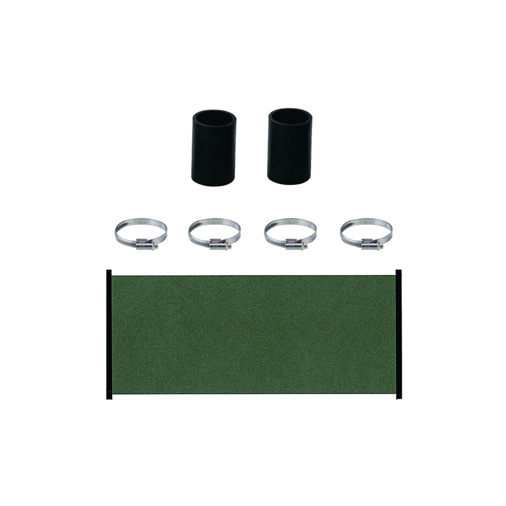 De zijbuizen van het paneel hebben een buitendiameter van 50 mm. Er zijn in totaal 4 gaten voor verwarming, waarvan er 2 moeten worden geblindeerd en 2 moeten worden aangesloten op het filtercircuit. Voor beide gevallen wordt een stuk rubberen slang met een inwendige diameter van 50 mm gebruikt, dat op de uitlaat van de verwarming wordt geschoven en met een spanband wordt vastgezet. Het volgende wordt vervolgens in het andere uiteinde van de rubberen koppeling gestoken: