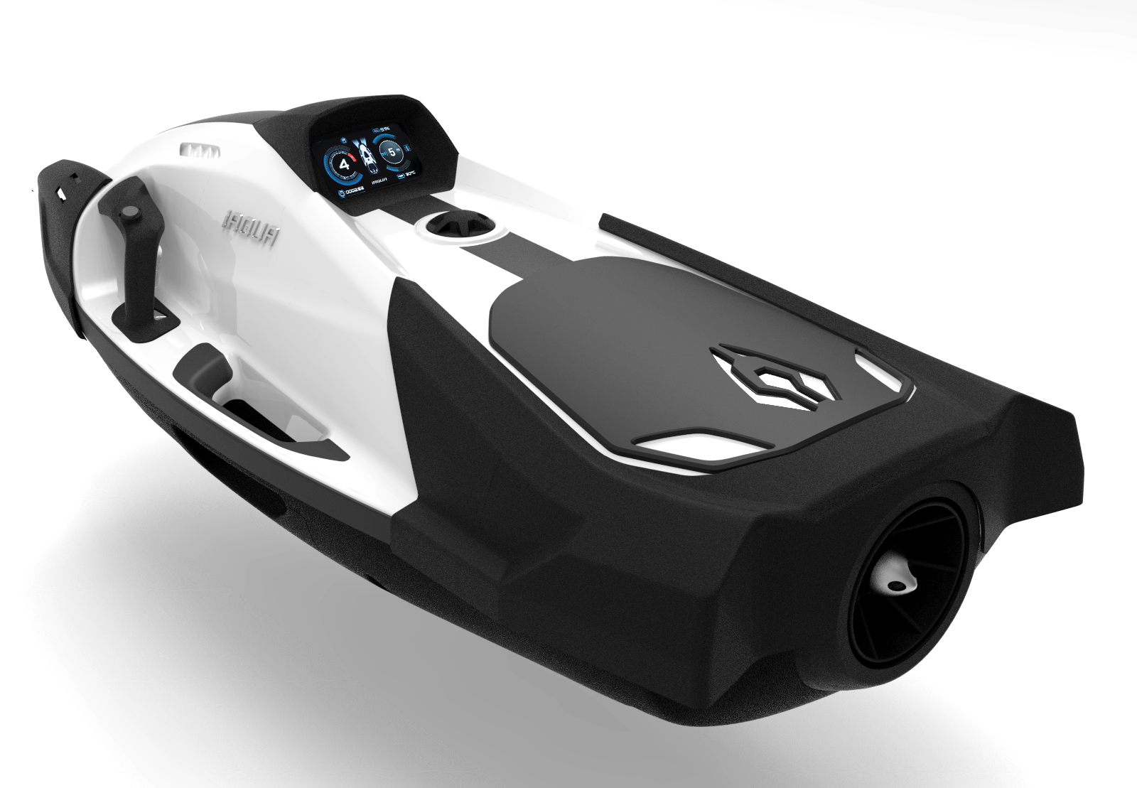 Het high-definition 5-inch liquid crystal display is uitzonderlijk helder en is onder druk getest tot een diepte van 100 meter. Het hoge niveau van schermhelderheid is van groot voordeel bij het rijden aan de oppervlakte tijdens een heldere of zonnige dag en is een eigenschap die niet gevonden wordt op andere duikscooters waar belangrijke informatie uiterst moeilijk te lezen kan zijn.