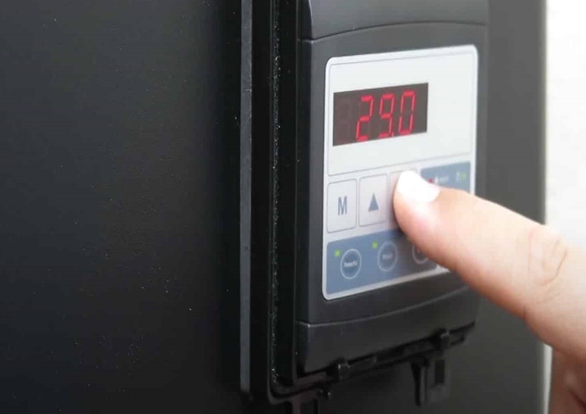 De energiezuinige warmtepomp ontdooit automatisch en beschikt over twee snelheden die je handmatig kunt regelen op het LED-scherm.