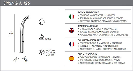 Technische gegevens van de Solardouche "Spring"