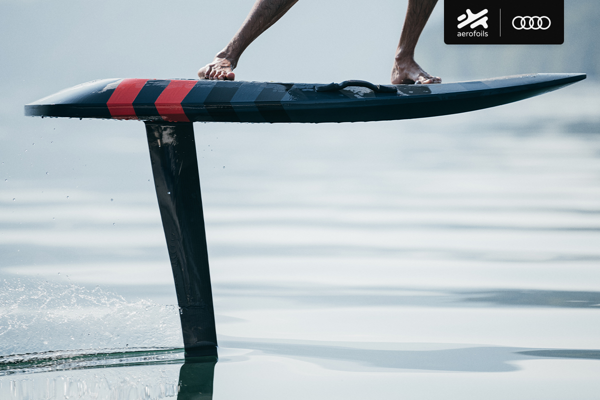 Voel het surfen op een Audi e-tron efoil. Zweven boven het water zonder wind of golven, een echte ervaring.