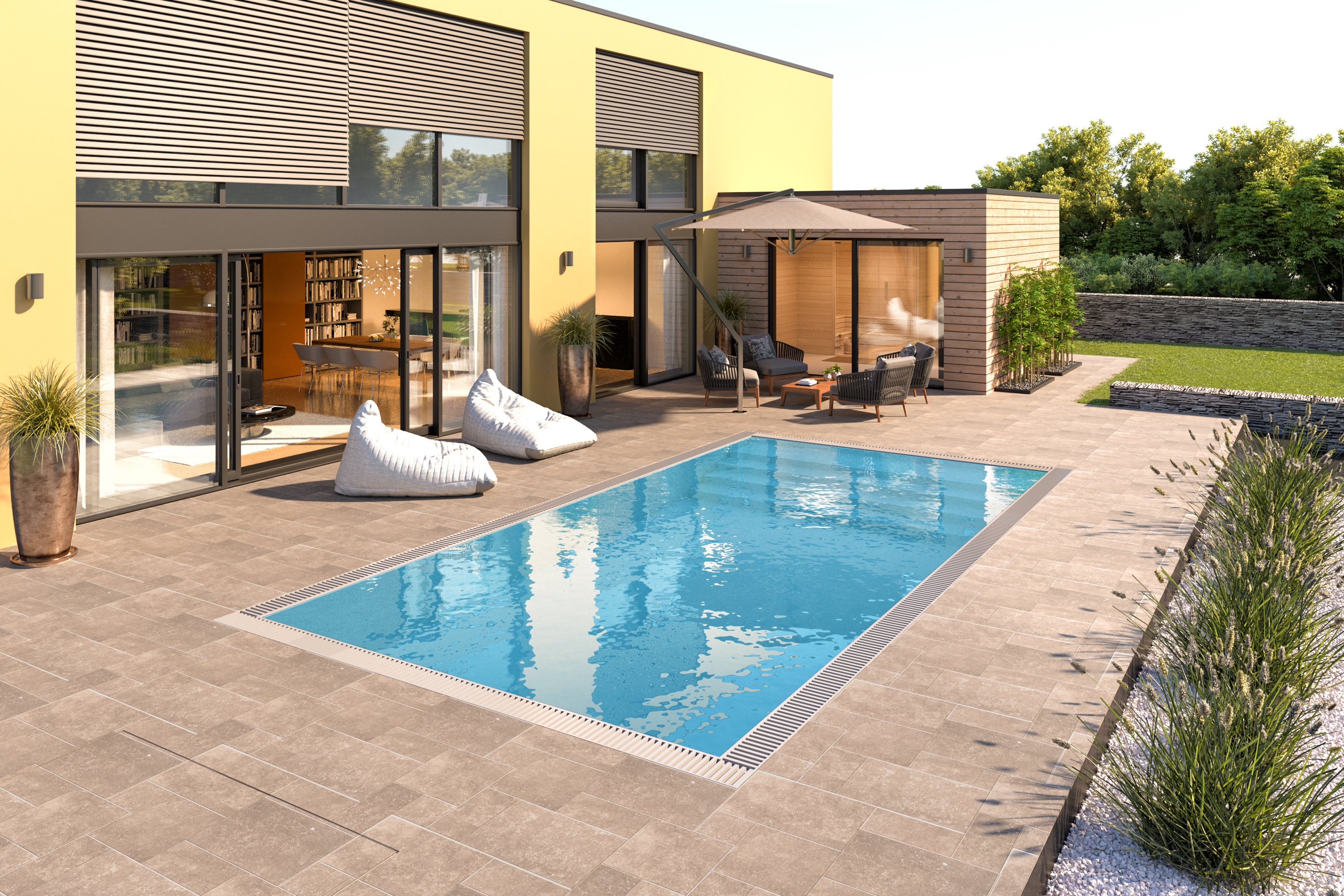Door zijn strakke lijnen - tijdloos design - past dit zwembad in iedere moderne tuin.