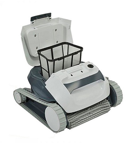 Dankzij de ruime filtermand die gemakkelijk van bovenaf te bereiken is, kan de robot zowel groot vuil (bladeren, takjes, insecten, ...) als fijn vuil (zand, ...) van de achtergrond stofzuigen en opvangen.
