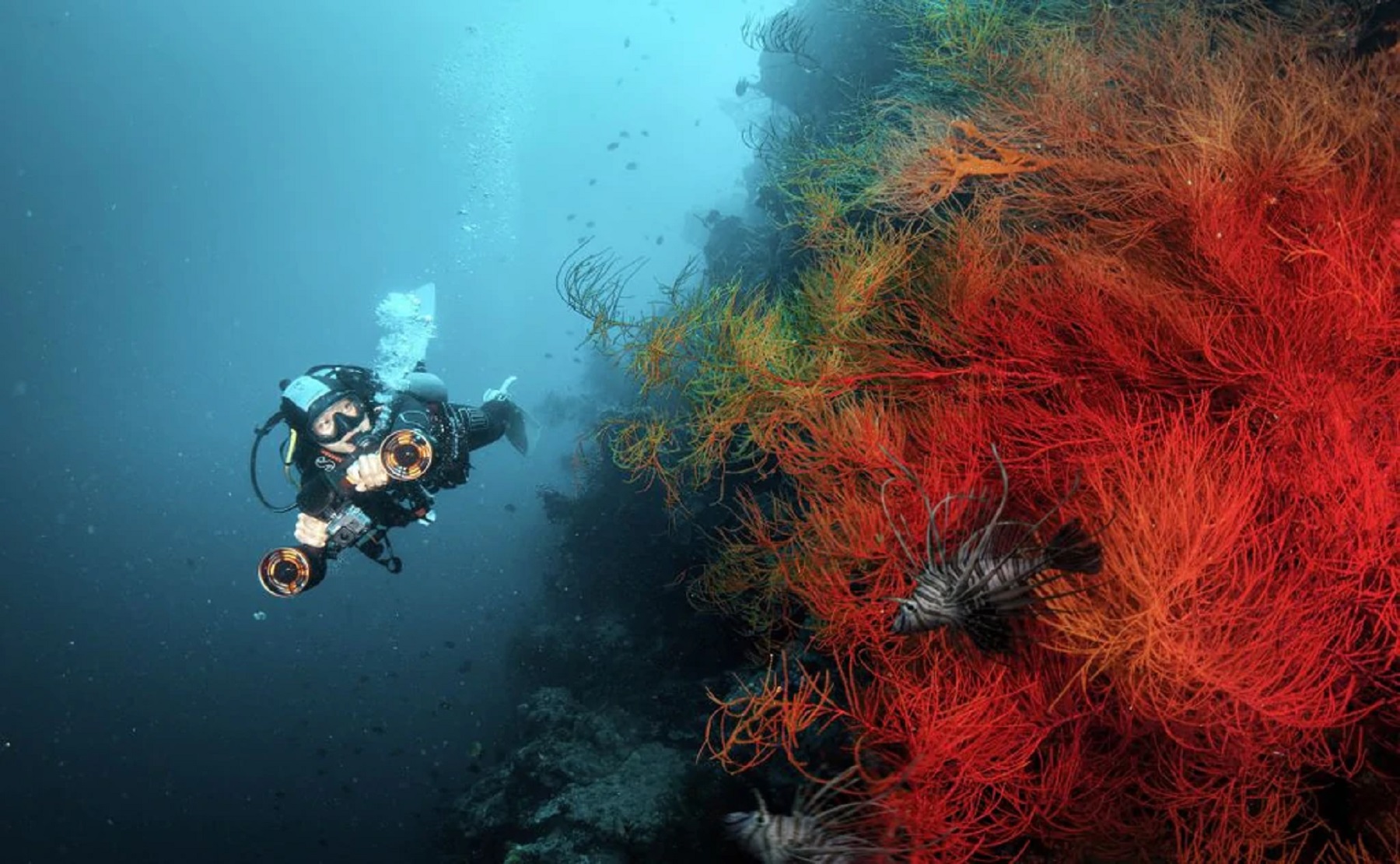 Dus duiken is het beste van beide. Het maakt je sterk, maar gelukkig. Het maakt je fit maar ontspannen. Je bent één met de natuur, volledig ondergedompeld en erdoor omringd. Je vergeet de problemen die jou en je kantoorbaan misschien zorgen baren omdat je in een andere wereld bent.