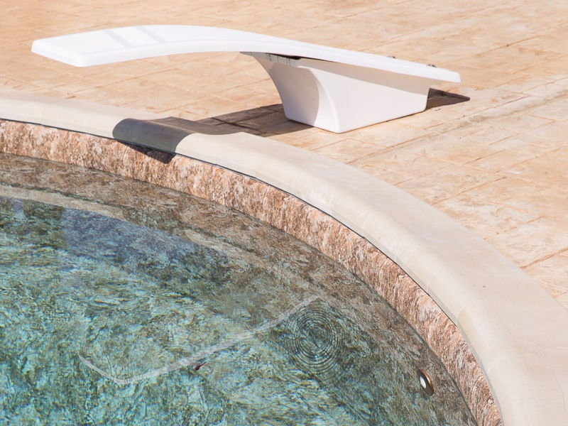 Brede flexibele duikplank, gemaakt van polyesterhars en glasvezel. Onaangetast door UV-stralen en weersinvloeden.
