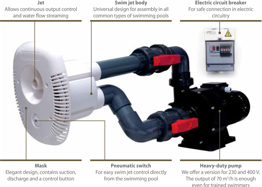Brilix Jet Swim Elegance 70 m3/uur - 230V U kunt sportief blijven zwemmen zonder van plaats te veranderen, dankzij deze krachtige tegenstroominstallatie. Met behulp van deze krachtige jetstream bent u in staat, in iedere gewenste zwemslag, stilstaand baantjes te trekken in uw eigen zwembad. In de praktijk wordt deze optie gekozen omdat het zwembad hierdoor ook geschikt wordt voor trainings- en fitnessdoeleinden, het is zeker goed voor uw conditie. Kinderen waarderen de jetstream vooral omdat je er zo lekker mee kunt spelen. Hard zwemmen tegen de stroom in om je vervolgens mee te laten voeren met de stroom is natuurlijk het mooiste wat er is!