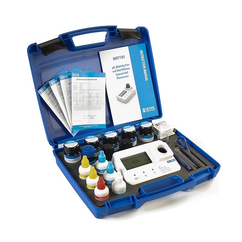• Vrij chloor, totaal chloor, pH, isocyanuurzuur en alkaliteitsmeter.