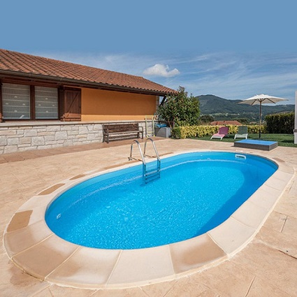 Het zeer ruime ovaalvormig familiezwembad bij uitstek.