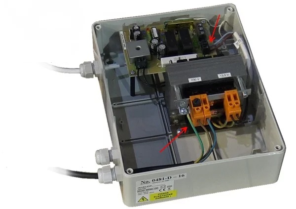 In het pakket ontvangt u een elektriciteitskast en een aansluitkabel van de lier naar deze kast. De verbindingsmethode is te zien op de afbeelding. Het is niet ingewikkeld - u voert de kabels gewoon door de doorvoertules, draait ze vast en bevestigt de kabels aan de juiste klemmen. De stroomkabel is niet inbegrepen in het pakket.