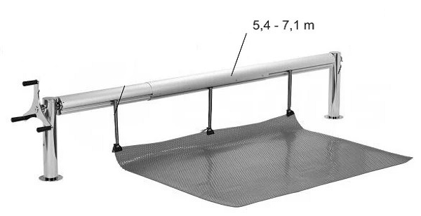 Het oprolsysteem is geschikt voor afdekkingen van 5,40 - 7,10 meter breedte en 15 meter in lengte.