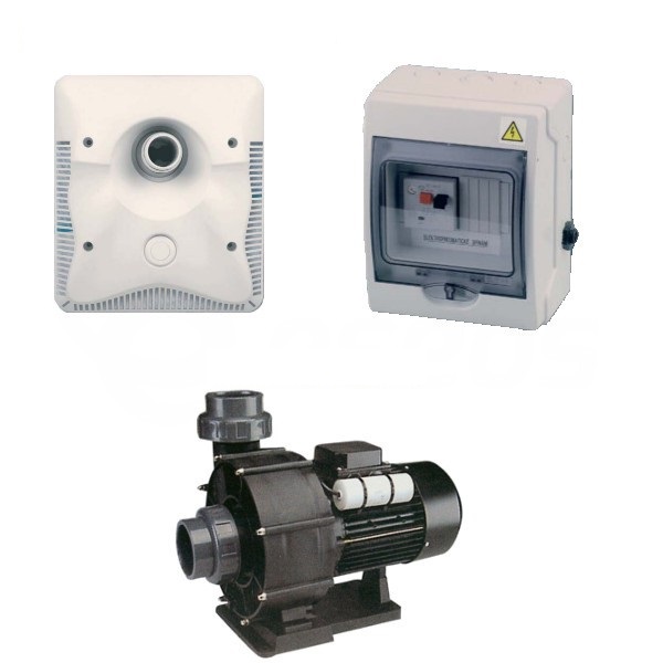• 1. omvat: 1x K-JET Calipso 66m³/h - 230V jetstream met verstelbare Nozzle jetbehuizing, bedieningskast en pomp.