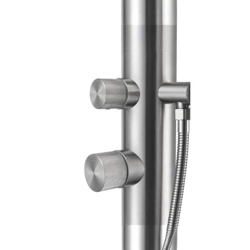 • Douche van roestvrij staal, vervaardigd uit V4A, met een massieve douchekolom van Ø 76 mm.