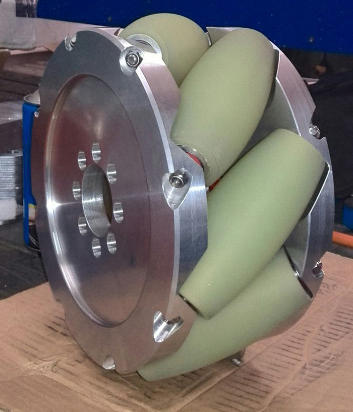 There are many small rollers distributed diagonally on the rim, so the wheels can slide laterally. When the wheel rotates around the fixed wheel spindle, the envelope surface of each small roller is a cylindrical surface, so it can continuously roll forward. Mecanum wheels are compact and sporty.