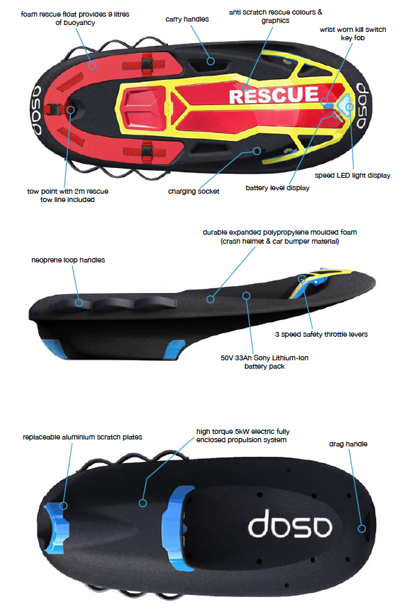 De Rescue 156 Jetboard is ontworpen voor professionele redders en badmeesters en is een snel lancerend elektrisch powerboard die reddingswerkers in het water zal verbazen. Ideaal voor gebruik in moeilijk bereikbare gebieden dan een kleine boot of jetski.