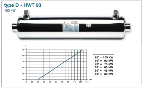 • Verwarming: uit een ketel, een warmtepomp, van zonnecollectoren of soortgelijke Type: D-HWT 93