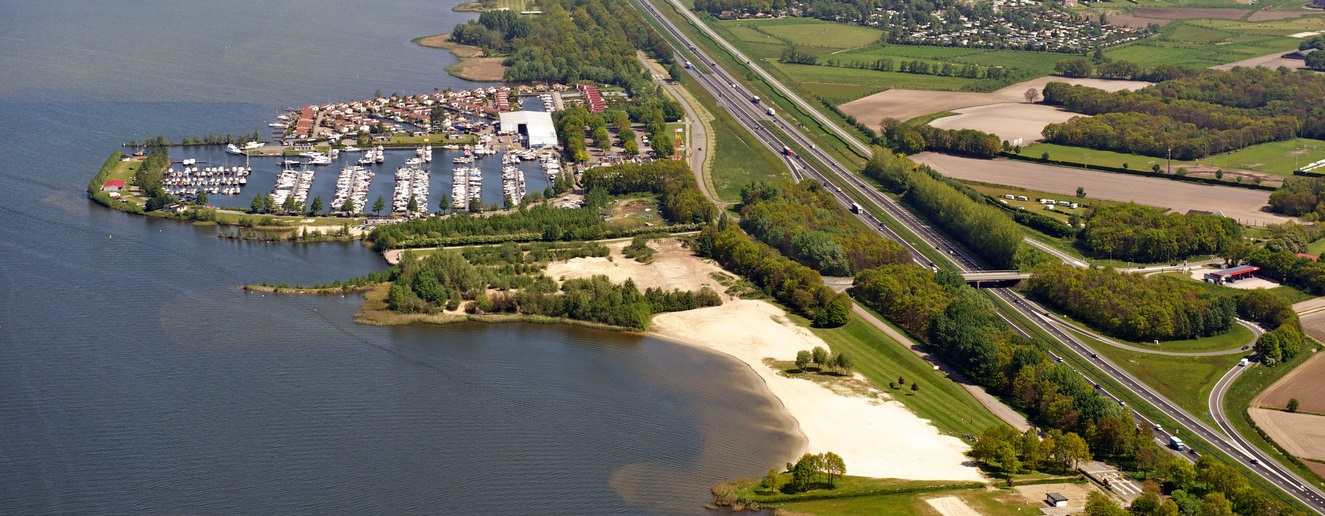 Deze locatie is centraal gelegen in Biddinghuizen aan het Veluwemeer, tegenover Harderwijk en Strand Horst te Ermelo. Met grote zandstranden is het heerlijk vertoeven aan en op het water. Liefhebbers van de watersport kunnen hier volop genieten van zeilen, eFoilen, kanoën, jetboarden of zwemmen. Ook voor wandel- en fietsfanaten is het een prachtige omgeving om te ontdekken.