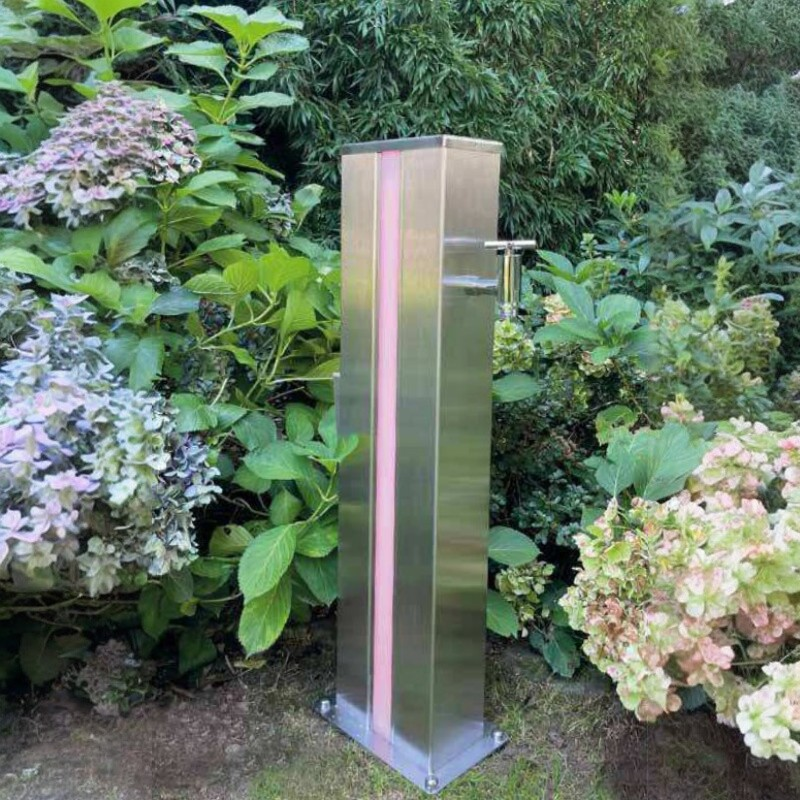 Maak het tuinieren gemakkelijker met een praktische waterkraan van gepolijst roestvrij staal met ledverlichting en stopcontacten.