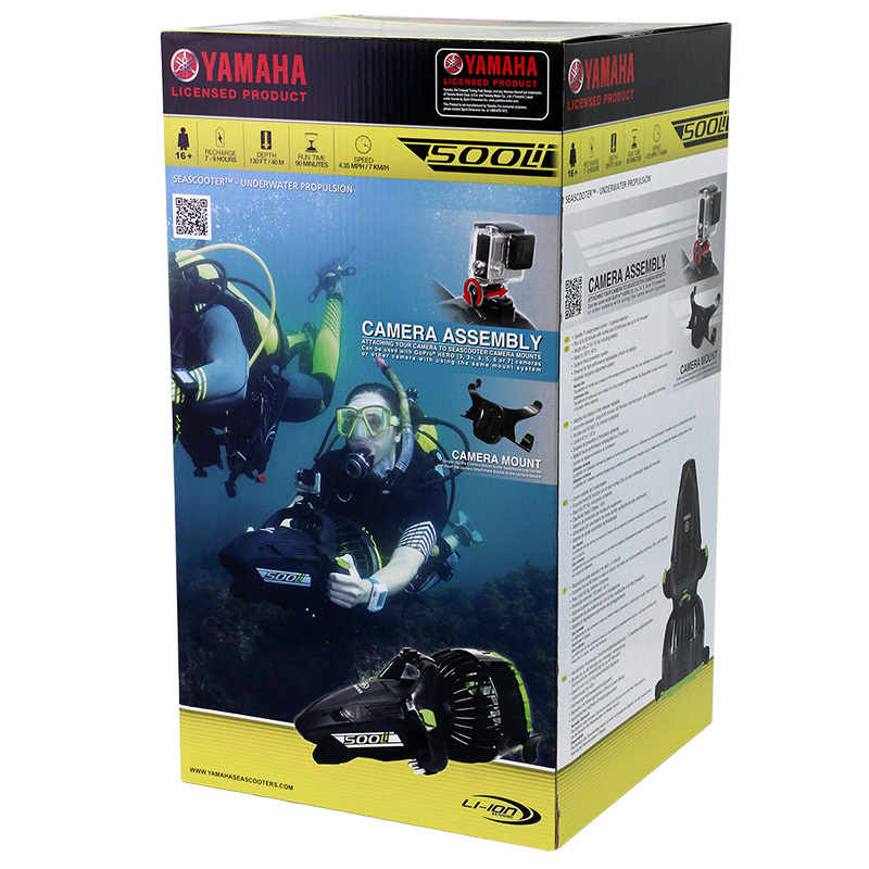 De Yamaha 500Li onderwaterscooter introduceert het eerste LI-ION accusysteem in een lichtgewicht recreatieve duikscooter. De batterij is ook verwijderbaar voor extern opladen en eenvoudige vervanging.