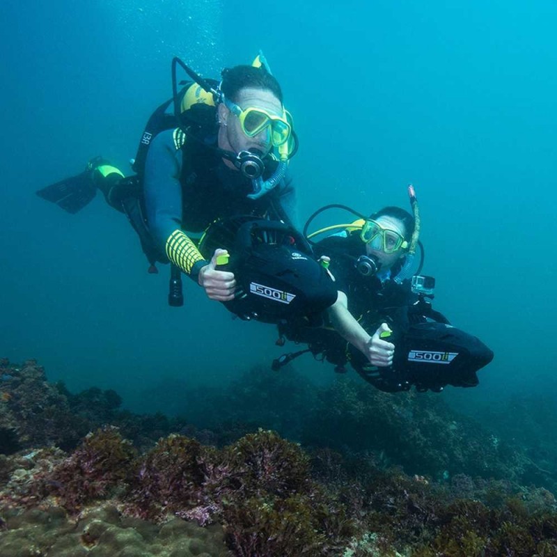 De Yamaha 500Li garandeert de meest spannende en energiezuinige onderwaterrit ooit. De 500Li heeft een topsnelheid van 7 km/u en een gebruiksduur van 90 minuten en garandeert de gebruiksduur van de batterij, de snelheid en prestaties voor de langste duiken.